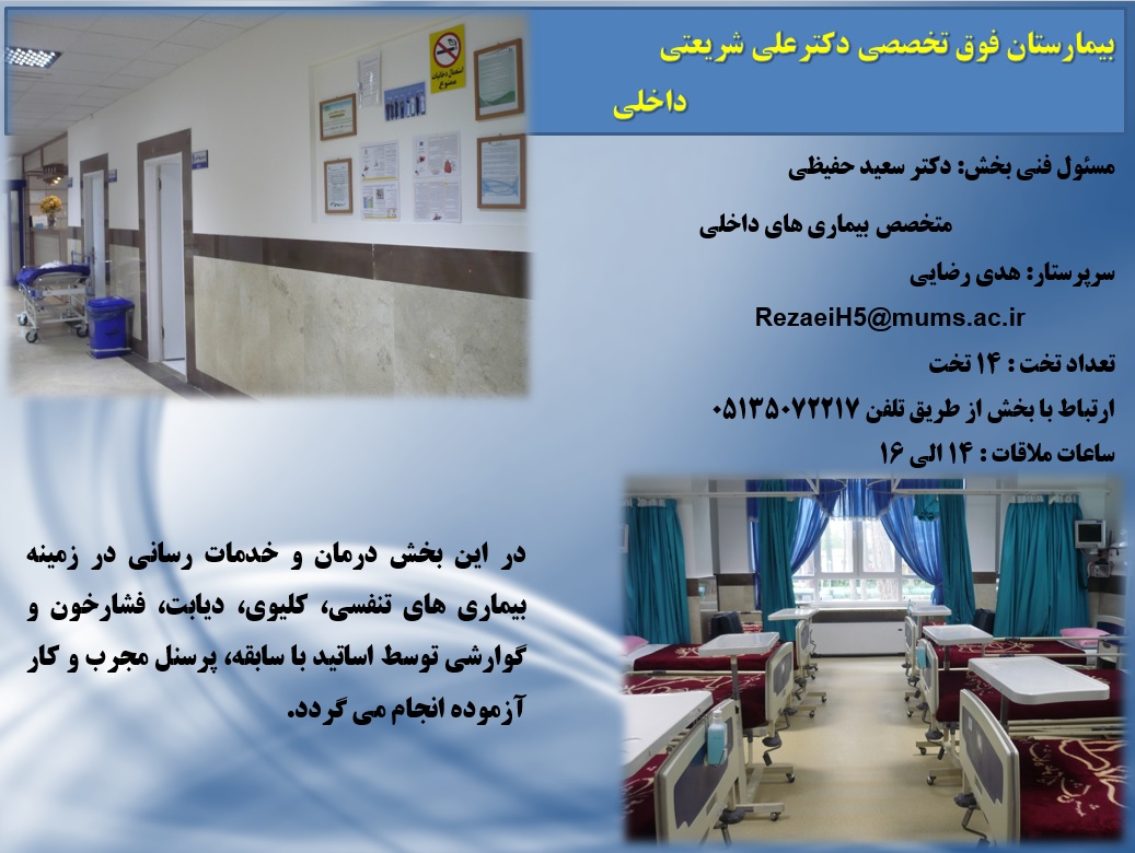 MUMS 1بخشهای درمانی 14 مهر 1396 بازدید: 2730 امتیاز: ( 0 Rating ) بخش داخلی امتیاز کاربران لطفا رای دهید رای 1 رای 2 رای 3 رای 4 رای 5