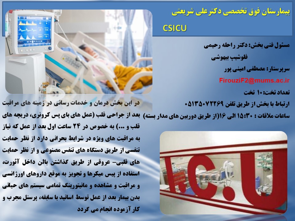 MUMS 1بخشهای درمانی 14 مهر 1396 بازدید: 2310 امتیاز: ( 0 Rating ) ICU قلب باز امتیاز کاربران لطفا رای دهید رای 1 رای 2 رای 3 رای 4 رای 5