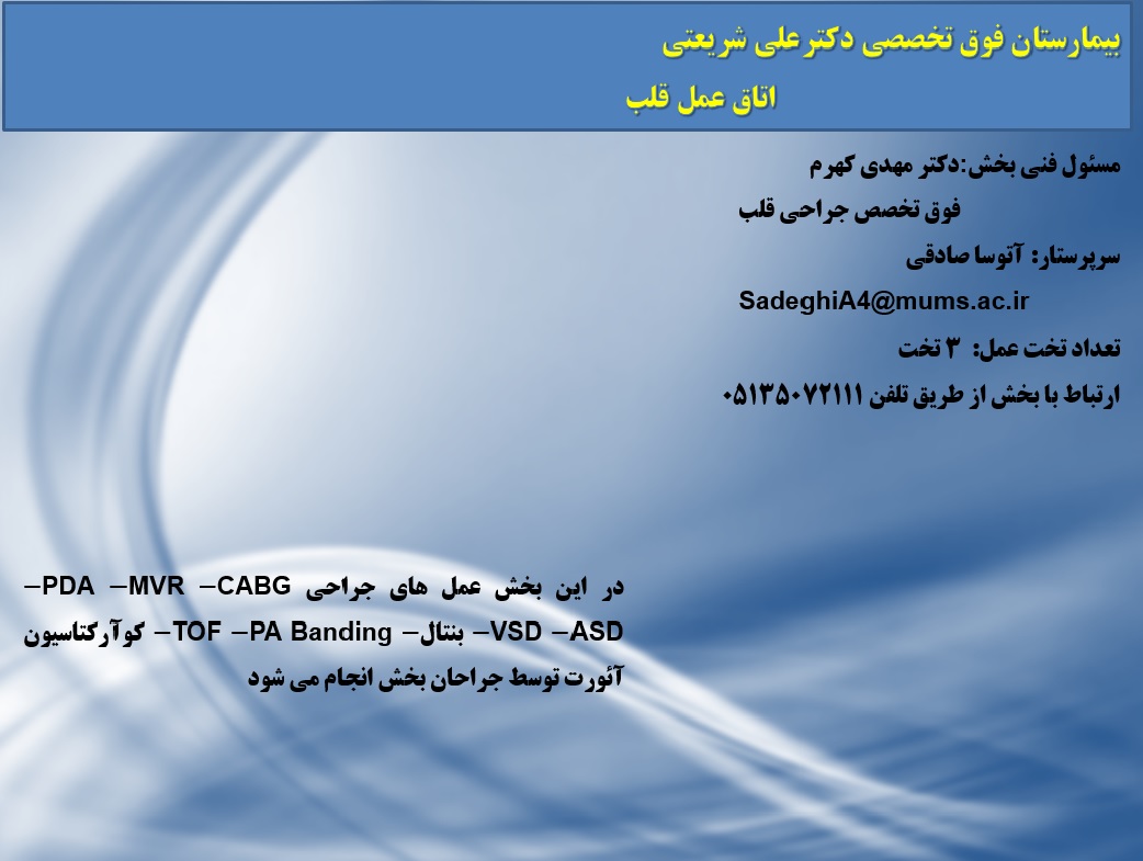 MUMS 1بخشهای درمانی 14 مهر 1396 بازدید: 1982 امتیاز: ( 0 Rating ) اتاق عمل قلب امتیاز کاربران لطفا رای دهید رای 1 رای 2 رای 3 رای 4 رای 5