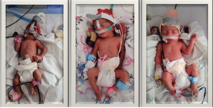 حدود ساعت 4:30 صبح بیست و هشتم اردیبهشت ماه 1403 طی یک عمل سزارین سه خواهر و برادر، یکی پس از دیگری متولد و اولین نجواهای زمینی خود را با صدای گریه هایشان برای پزشک و پرسنل اتاق عمل زمزمه نمودند.